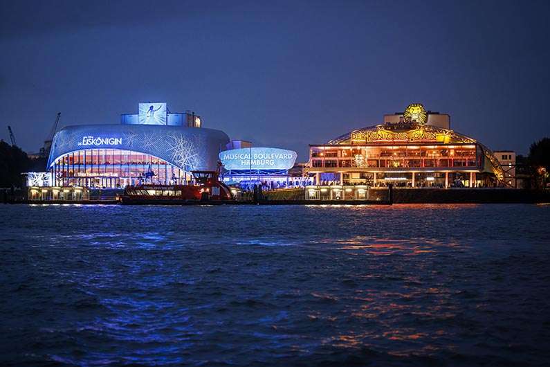 Fünf stimmungsvolle Stage Entertainment Theater haben wir in Hamburg! Besonders bekannt sind sie durch Musicalerfolge wie den „Der König der Löwen“, „Mamma Mia“, „Tarzan“, „Hamilton“ oder „Die Eiskönigin“ sind. Natürlich bieten sich die Häuser aber auch für Kongressveranstaltungen aller Art an. Das Portfolio ist geeignet für Galas, Preisverleihungen, Versammlungen, Seminare, Feiern, Präsentationen oder Pressekonferenzen. Das größte Theater, das Stage Theater am Hafen, bietet Platz für 2.030 Gäste, dicht gefolgt vom Stage Theater Neue Flora mit knapp 2.000 Plätzen.